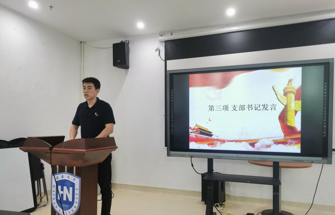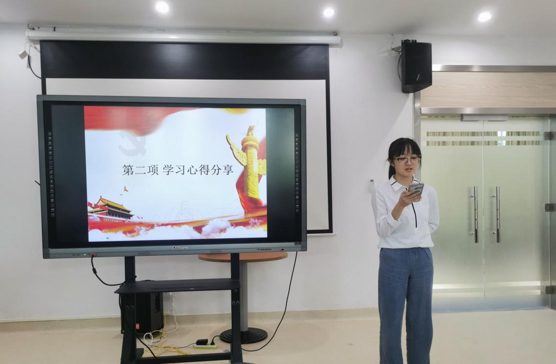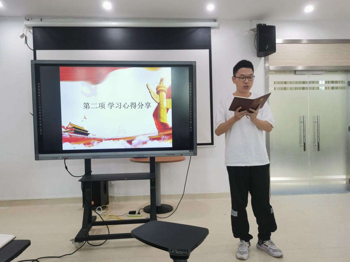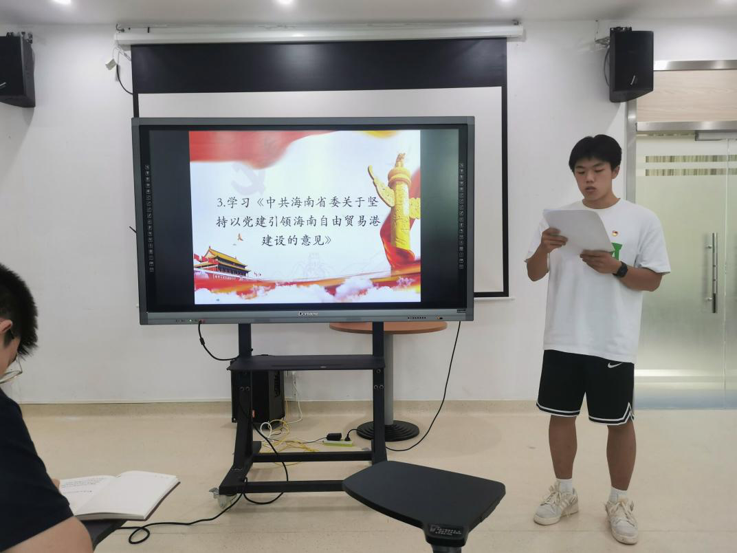 随后由汪子健同学分享学习心得。汪子健同志认为重点把握四个原则:我们应当全面贯彻习近平总书记“七一”重要讲话精神、习近平总书记关于海南工作的重要讲话和重要指示批示精神,全面提高党的建设质量。包含四个方面加强党的领导、突出服务大局、注重融合贯通、坚持守正创新。