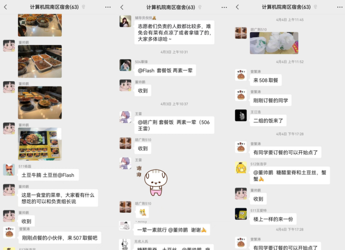 为了保障在南区研究生宿舍居住的学生的温饱问题的同时减少人员流动,降低疫情感染风险。本支部联合了研究生二支部于2022年4月2日至2022年4月16日组织了线下南区送餐活动。