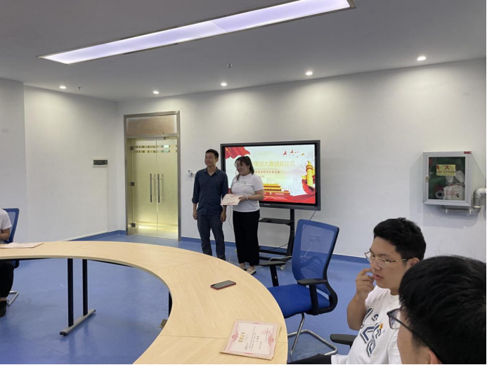 会上由黄小欧书记和倪晗老师对获奖的同志进行了颁奖。2022年5月16日18:30在图书馆503举办了颁奖仪式,出席本次活动的有永利集团88304官网党委副书记黄小欧老师、永利集团88304官网研究生一支部书记倪晗老师,颁奖仪式由李敬灿同志主持。