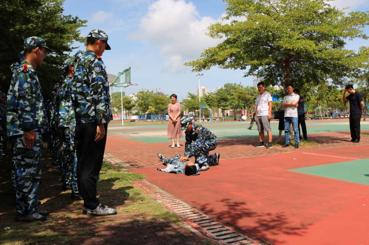 期间,院领导一同观看了第五分队参训教官表演的擒敌拳、第四分队新生展示的医疗救护演练等,赢得在场人员的一致认可与阵阵掌声。