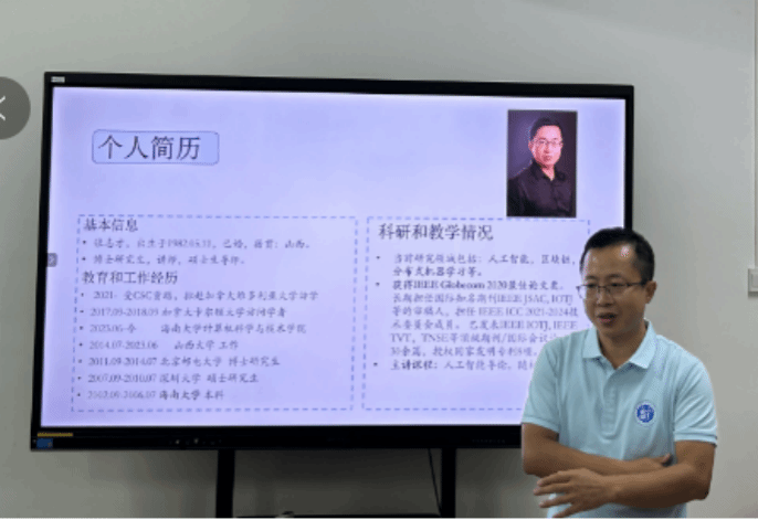 张志才老师以学长的身份讲述了他与海南大学的缘分,回忆自己在母校生活、学习的点点滴滴。他着重介绍无线通信网络发展历史、4G/5G网络资源、AI与通信网络的演进关系等内容,引用生动、经典的案例阐述“人工智能能为网络做些什么”“网络能为人工智能做些什么”。他分享自己担任班主任的工作经验,勉励新生们要珍惜当下良好的生活学习条件,潜心学习、善于思考、刻苦钻研,积极参与科研实践,夯实专业基础,在专业学习中提升竞争力,将所学知识运用于实践中,在实践中实现自己的人生价值。