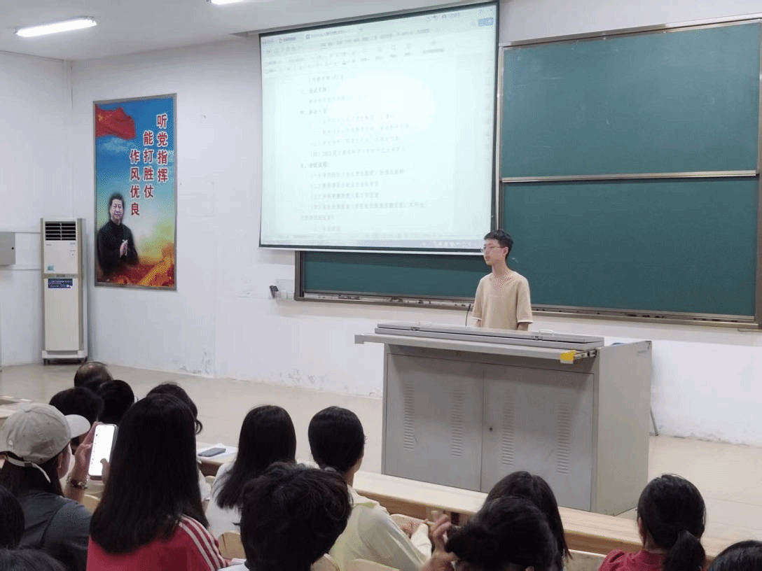 学生代表的经验分享环节。研究生袁宇鹏结合自身科研经历,讲解了如何平衡课程学习与科研探索,建议有深造意向的新生尽早接触科研项目;本科生李润庭以“目标”与“主动”为关键词,分享了自己从确定保研目标到加入课题组、发表科研论文的历程,提醒新生主动规划未来、积极争取资源,无论是就业、考研还是保研,都需提前做好准备。