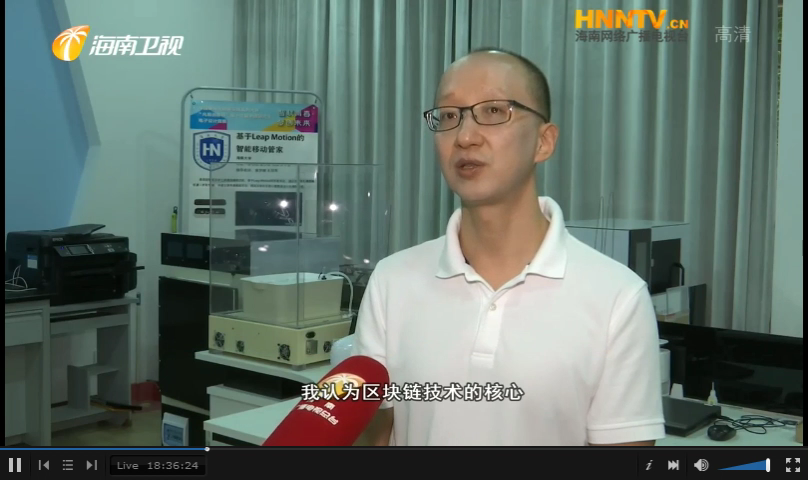 11月3日,海南省电视台在海南新闻联播头条报道海南省区块链产业创新发展情况。全省区块链产业氛围基本形成,企业数量快速增加,应用领域不断拓展。在报道中,海南大学计算机与网络空间安全学院数据科学与大数据技术系主任段玉聪教授就“区块链是什么”的问题接受记者采访。
