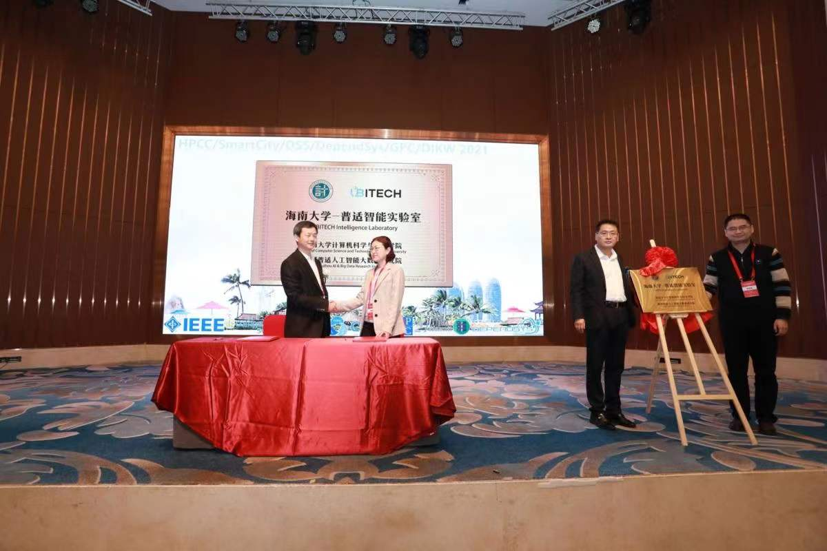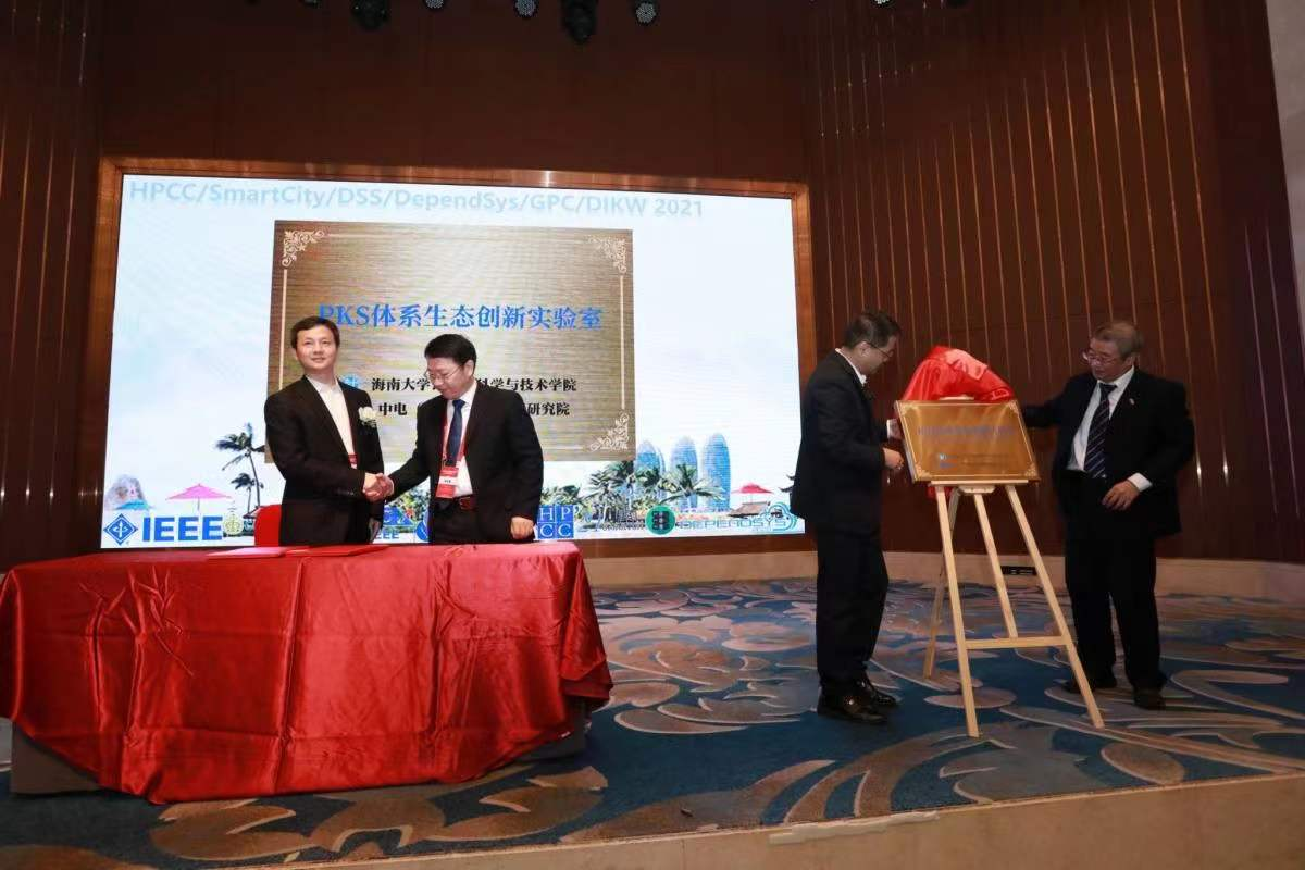 仪式上同时也为与社会合作新成立的五个实验室进行了揭牌,分别是与中电联合创新研究院合作的PSK体系生态创新实验室、与中国联通(海南)创新研究院合作的产业互联网创新实验室、与芯原微电子(海南)有限公司合作的海南大学芯原智慧医养创新实验室、与海南纽康信息系统有限公司合作的海大纽康智慧数据实验室、与湖州普适人工智能大数据研究院合作的海南大学-普适智能实验室。
