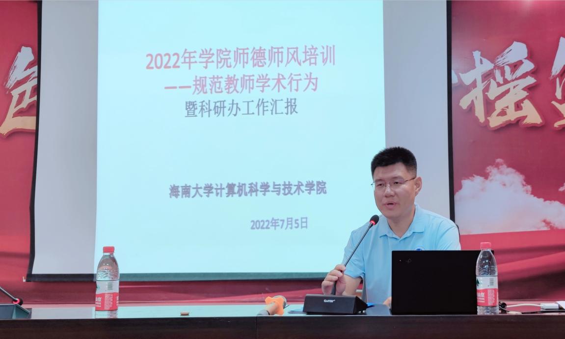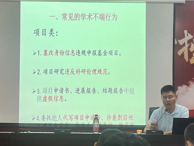 图2.张清辰副院长在做学院进行师德师风培训-规范教师学术行为培训
