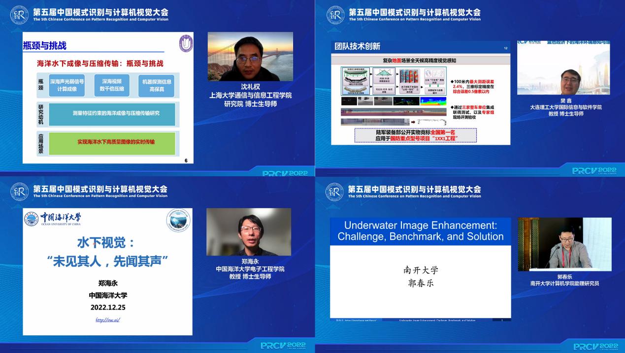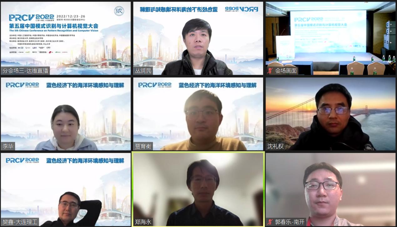 2022年12月25日晚上,第五届中国模式识别与计算机视觉大会(The 5th Chinese Conference on Pattern Recognition and Computer Vision, PRCV 2022)专题论坛“蓝色经济下的海洋环境感知与理解”成功举办,本次专题论坛由永利集团88304官网,永利官网副教授、博士生导师李华老师联合东南大学计算机学院贾育衡副教授和北京交通大学丛润民副教授共同承办。应邀参加本次论坛的来自上海大学国家项目获得者沈礼权教授、大连理工大学国际信息与软件学院院长樊鑫教授、中国海洋大学郑海永教授和南开大学郭春乐老师,分别带来了精彩纷呈的专题报告。