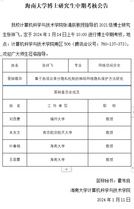 海南大学博士研究生中期考核公告