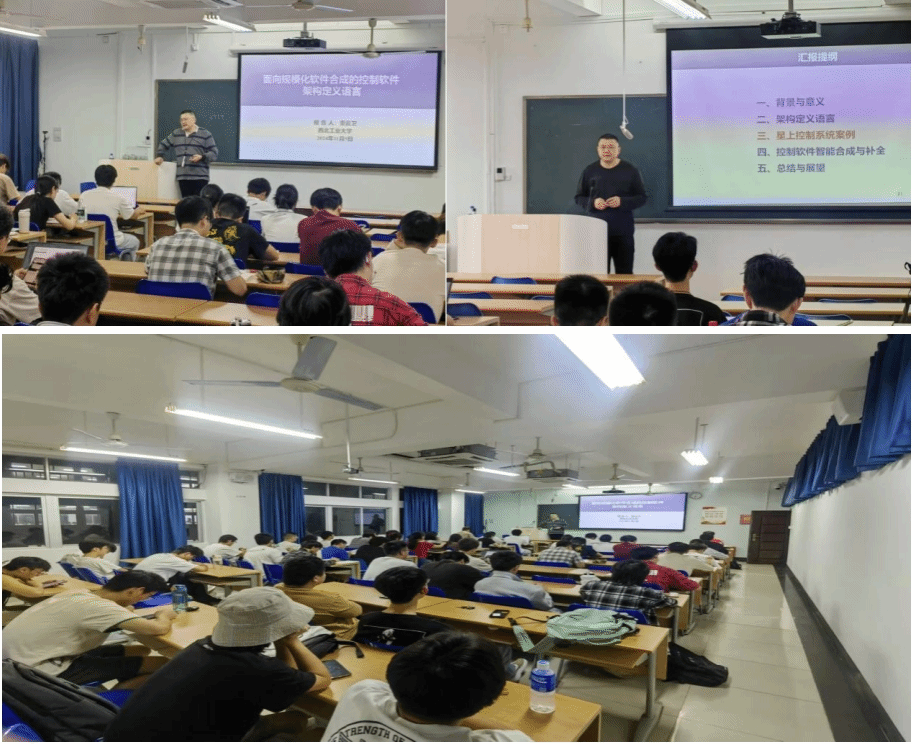 董云卫教授融合课程思政元素,结合国产航天器主要讲授了面向规模化软件合成的控制软件架构定义语言,主要包括模型驱动架构的原理和方法、MDA的技术标准和发展趋势、软件架构的定义与内涵、控制软件智能合成与补全等内容;董威教授主要讲授了可信软件技术,主要包括高可信软件的基本概念、关键技术、未来的挑战与相关工作等内容。