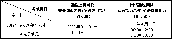 每位考生的远程上机考核时间为1小时,其中专业知识考核40分钟,英语应用能力(读、写)20分钟。网络远程面试时间为15分钟,其中综合能力考核10分钟,英语应用能力(听、说)5分钟。
