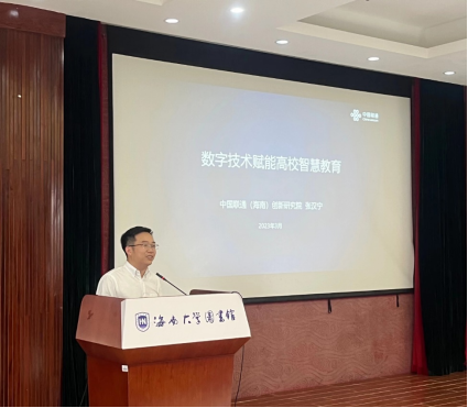 为了更好的提升我院学术交流的优良氛围,同时为了满足学生们对计算机科学领域前沿知识的需求,我院邀请了中国联通(海南)创新研究院副院长张汉宁博士于3月11日做了题为“数字技术赋能高校智慧教育”的讲座。