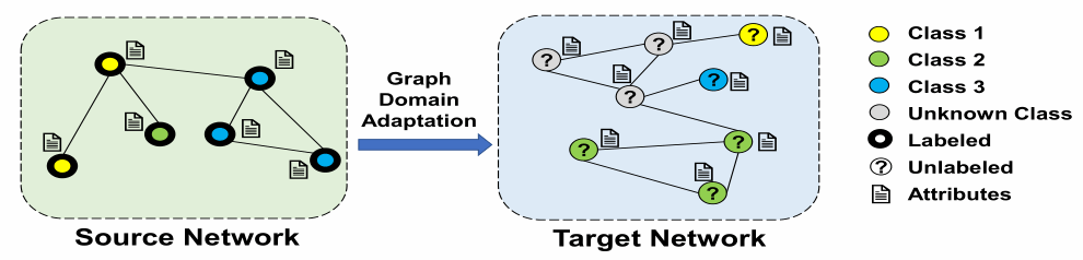 图1:开放集跨网络节点分类问题示意图