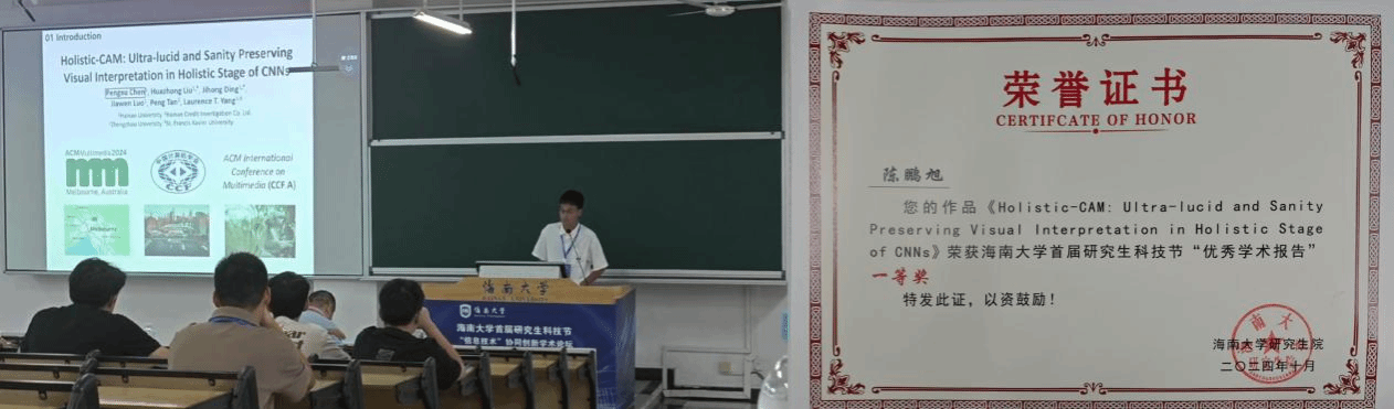 此外,该文章也入选了由研究生院主办的海南大学首届研究生科技节,并在“信息技术”协同创新学术论坛进行学术汇报。囊获“学术汇报一等奖”及“最受欢迎学术论文墙报奖”,在科技节受到广大师生一众好评。