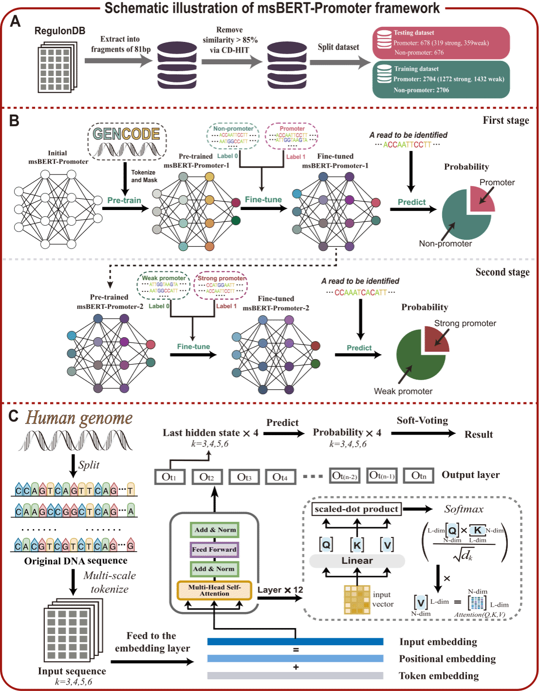 图一 提出的msBERT-Promoter模型框架示意图