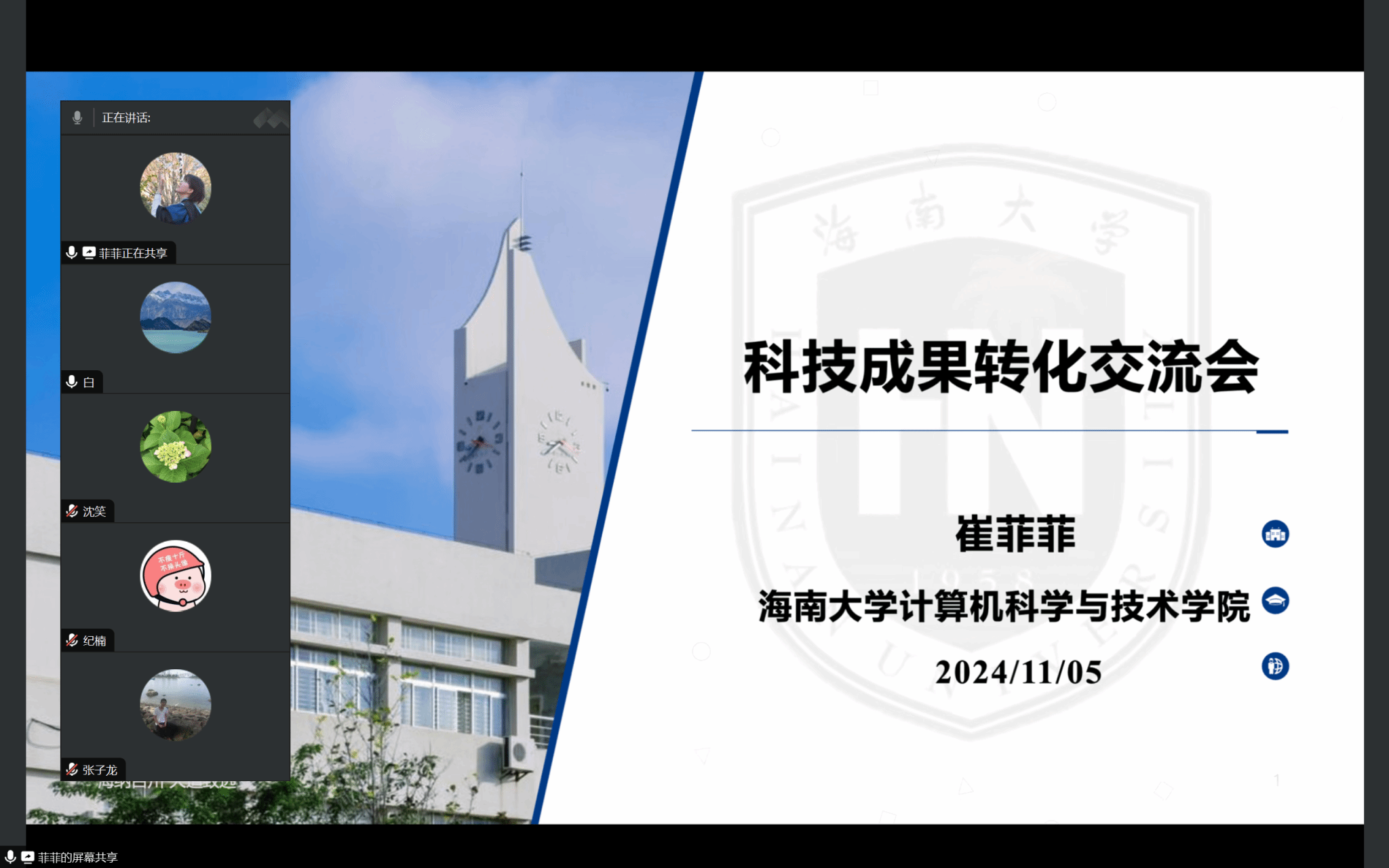 11月5日,永利集团88304官网,永利官网举行科技成果转化交流会,会议邀请到正在国外访学的崔菲菲老师进行了线上精彩分享。